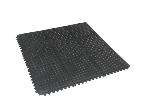 菱形板圖案:真正使這些橡膠地磚脫穎而出的特點是每塊瓷磚表面都有獨特的菱形板圖案。通常它們是由鋼等金屬制成的,但這些墊子上的墊子是由橡膠制成的。這賦予了它們金屬所無法達到的彈性和舒適度。凸起的線條增加了牽引力,讓您的腳步更加舒適彈跳。